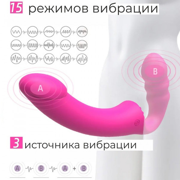 Страпон имеет 15 различных, невероятно мощных режимов вибрации и 2 мотора, что позволяет испытать обоим партнерам все уровни наслаждений! Управлять вибрацией легко и просто при помощи специальной кнопки, либо с дистанционного пульта управления